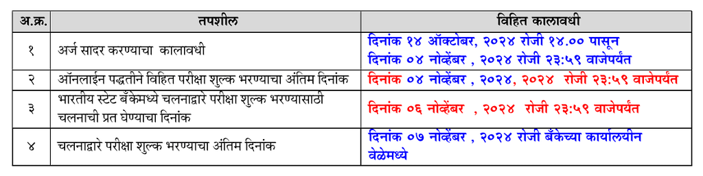 अर्ज सुरु होण्याची तारीख/Application Starting Date: 14 ऑक्टोबर 2024