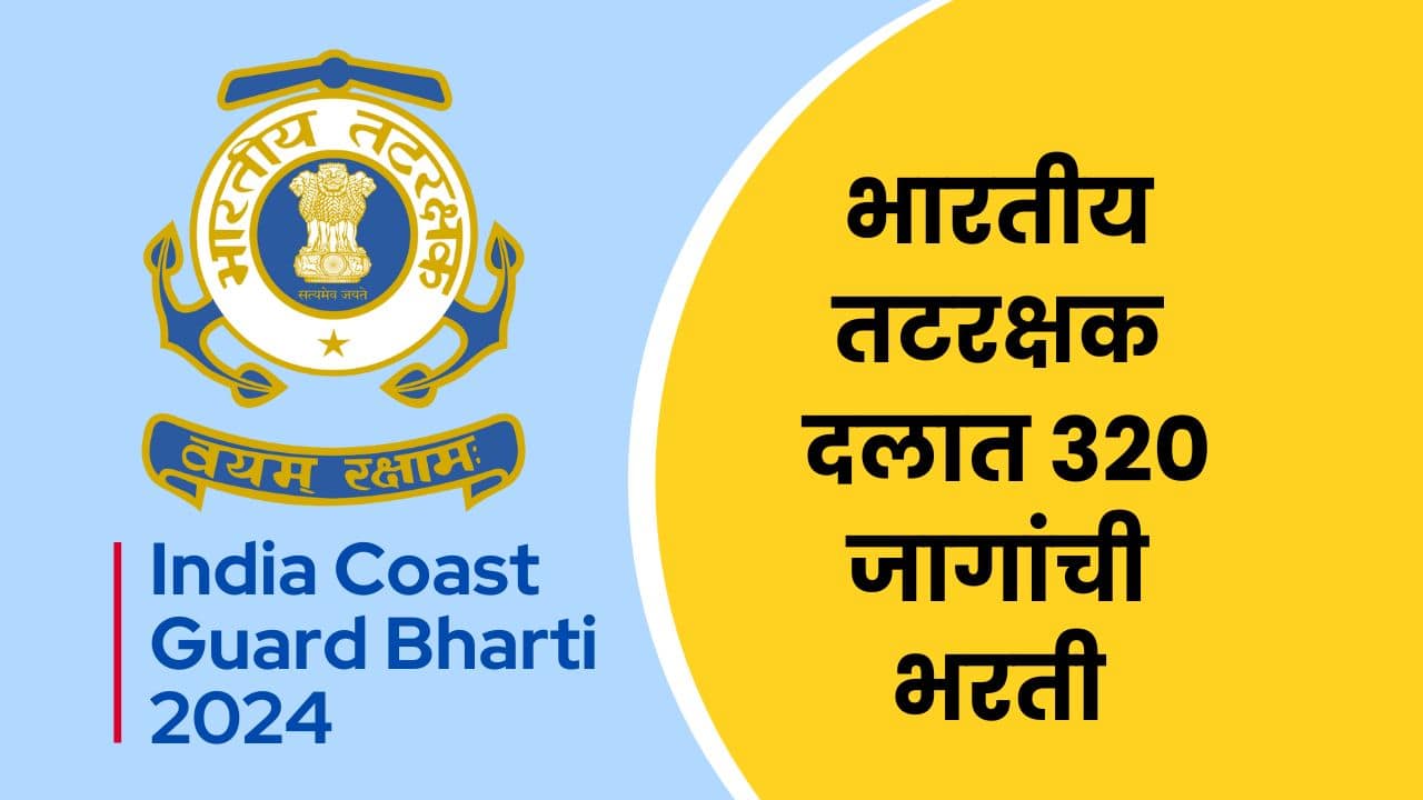 India Coast Guard Bharti 2024 India Coast Guard Bharti 2024: भारतीय तटरक्षक दलात विविध पदाच्या एकूण 320 जागांसाठी भरतीची जाहिरात नुकतीच प्रकाशित....