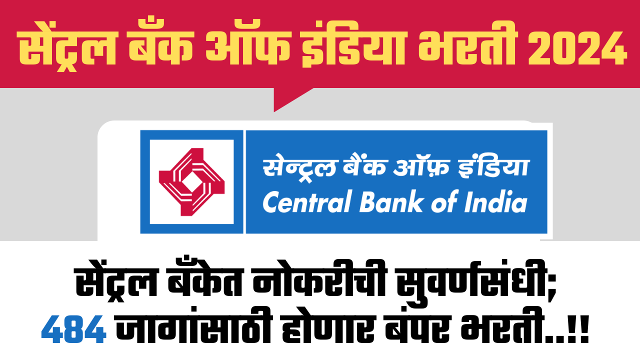 Central Bank of India Bharti 2024 Central Bank of India Bharti 2024: सेंट्रल बँक ऑफ इंडिया अंतर्गत विविध पदाच्या एकूण484 जागांसाठी भरतीची....