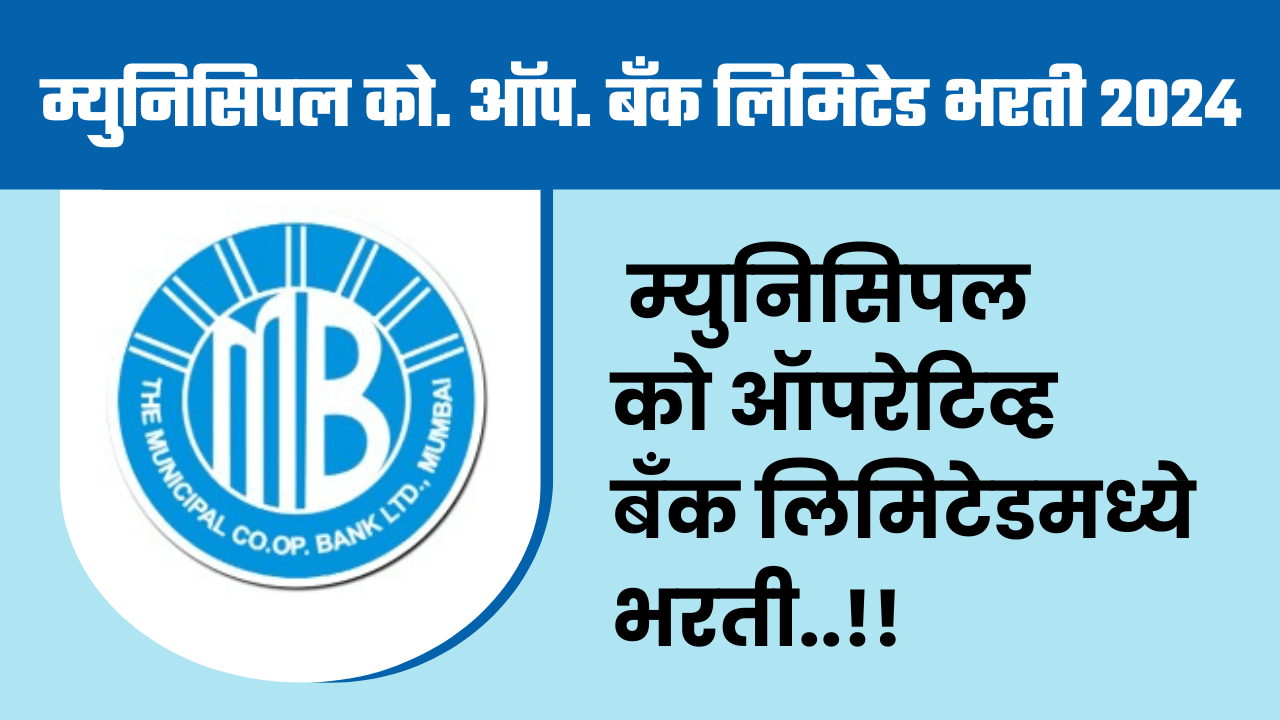Municipal Cooperative Bank Ltd Bharti 2024: म्युनिसिपल को. ऑप. बँक लिमिटेडमध्ये भरती..!!