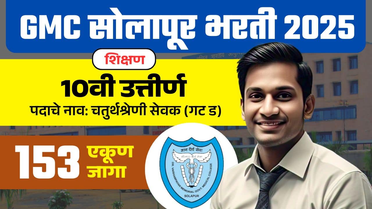 GMC Solapur Bharti 2025: शासकीय वैद्यकीय महाविद्यालय, सोलापूर येथे 153 जागांची भरती