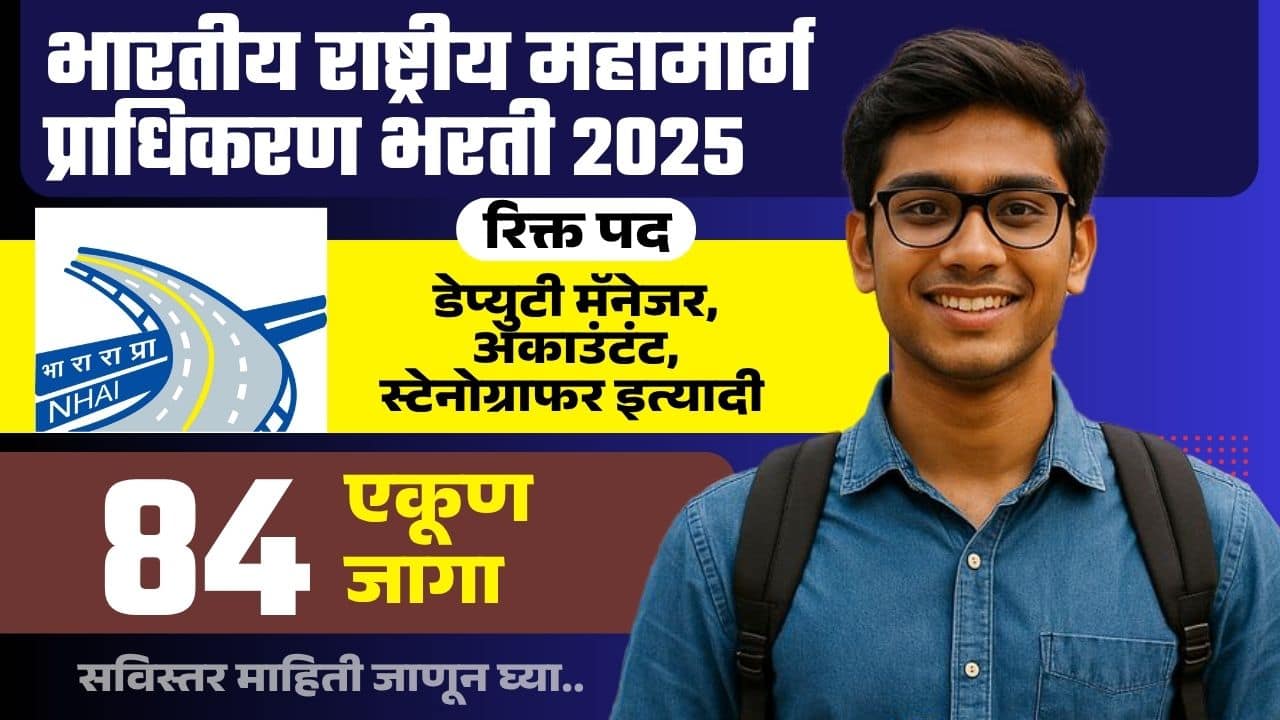 NHAI Bharti 2025: भारतीय राष्ट्रीय महामार्ग प्राधिकरणात 84 जागांची भरती