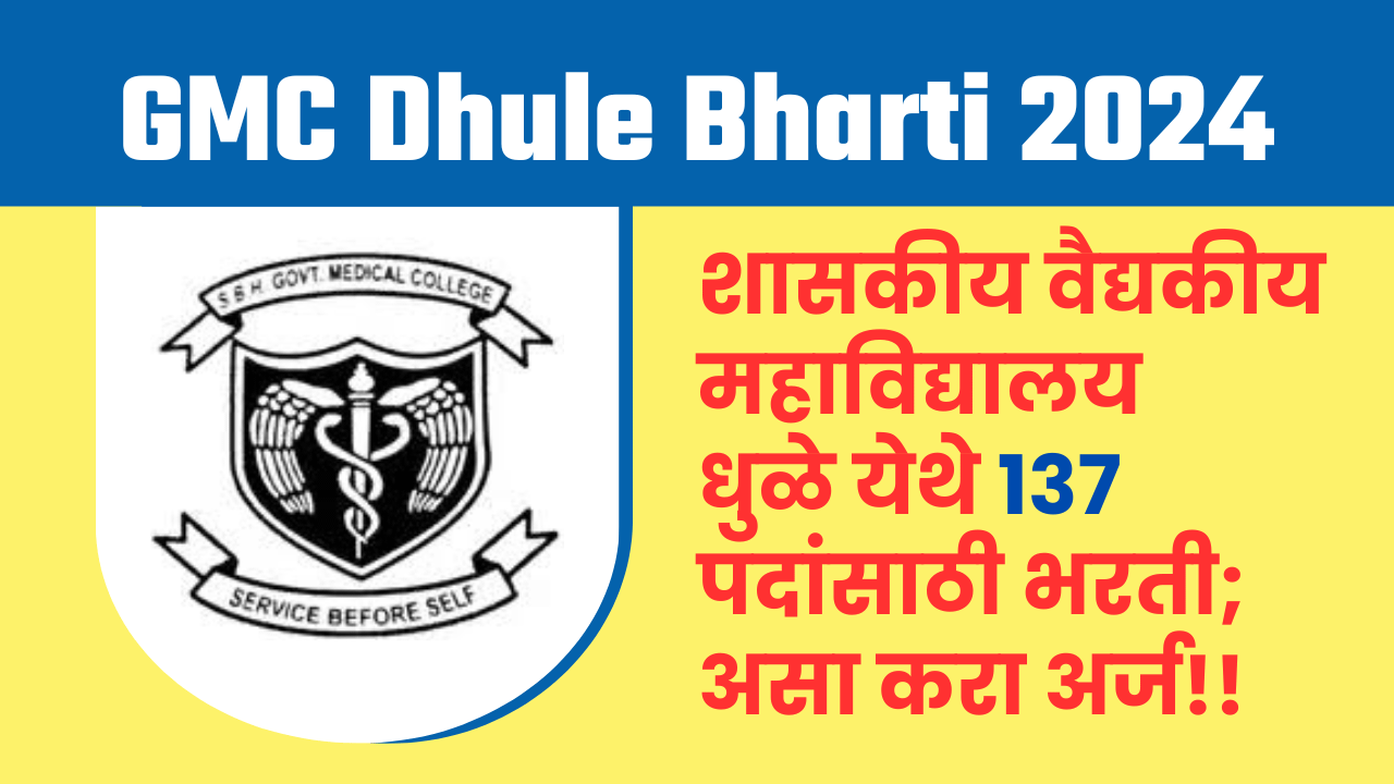 GMC Dhule Bharti 2024: शासकीय वैद्यकीय महाविद्यालय धुळे येथे १३७ पदांसाठी भरती; असा करा अर्ज!!