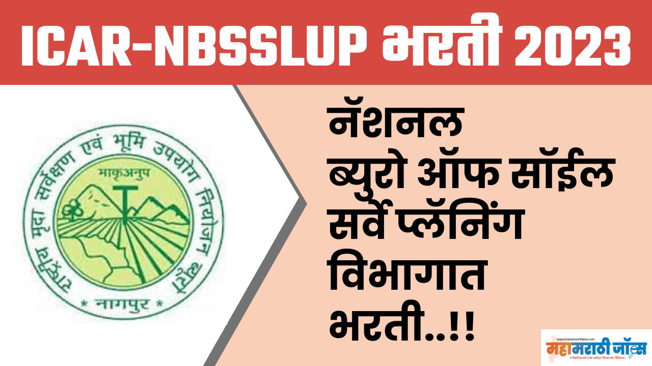 ICAR-NBSSLUP Bharti 2023 ICAR-NBSSLUP Bharti 2023: नॅशनल ब्युरो ऑफ सॉईल सर्वे अँड लँड युज प्लॅनिंग अंतर्गत विविध पदाच्या एकूण 02 जागांसाठी भरतीची जाहिरात....