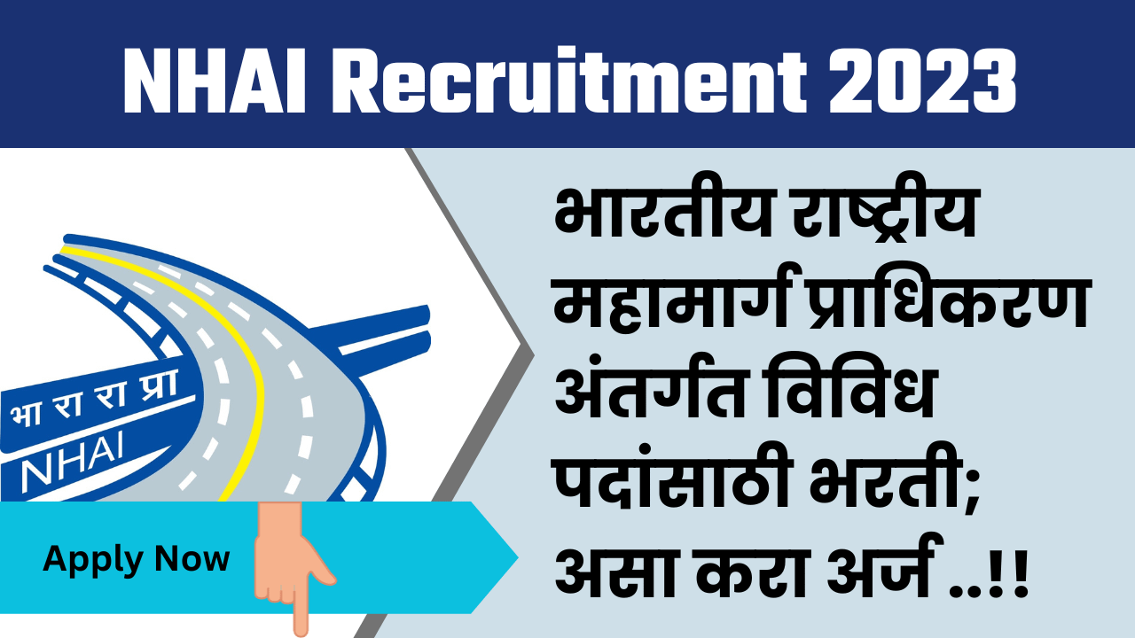 NHAI Recruitment 2023: भारतीय राष्ट्रीय महामार्ग प्राधिकरण अंतर्गत विविध पदांसाठी भरती; ऑनलाईन अर्ज करा..!!