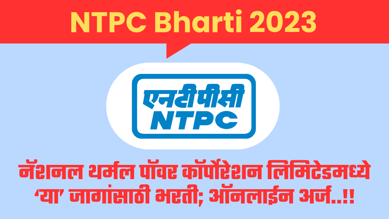 NTPC Bharti 2023 NTPC Bharti 2023: नॅशनल थर्मल पॉवर कॉर्पोरेशन लिमिटेड (NTPC) अंतर्गत विविध पदाच्या एकूण 30 जागांसाठी भरतीची जाहिरात प्रकाशित करण्यात आली....