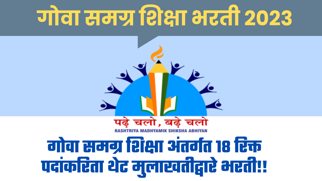 Goa RMSA Bharti 2023: गोवा समग्र शिक्षा अंतर्गत 18 रिक्त पदांकरिता थेट मुलाखतीद्वारे भरती!!