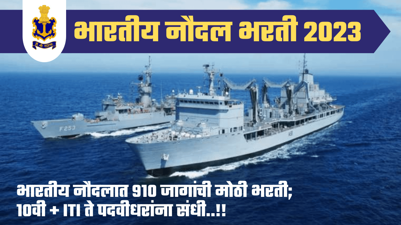 Indian Navy Recruitment 2023 Indian Navy Recruitment 2023: भारतीय नौदल अंतर्गत विविध पदाच्या एकूण 910 जागांसाठी भरतीची जाहिरात प्रकाशित करण्यात आली आहे.....