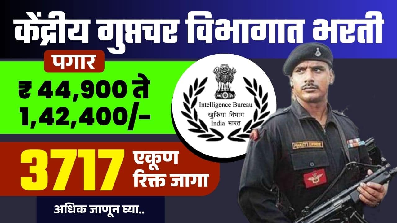 IB Bharti 2025 IB Bharti 2025: भारत सरकारच्या अंतर्गत सुरक्षेसाठी कार्यरत असणाऱ्या केंद्रीय गुप्तचर विभागात 3717 जागांची मेगा भरती निघाली....