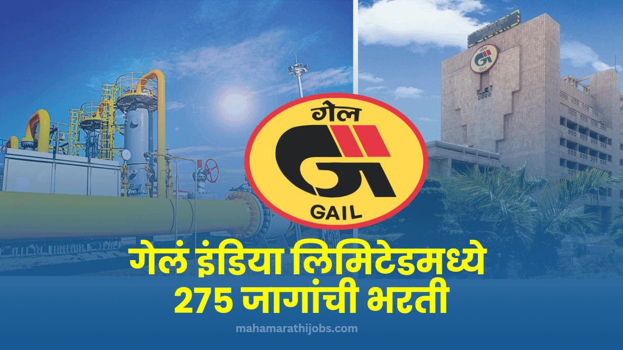GAIL Bharti 2024: गेलं इंडिया लिमिटेड अंतर्गत विविध पदांची भरती जाहीर करण्यात आली आहे. ही भरती एकूण 275 जागांसाठी होणार आहे. पात्र उमेदवारांना यासाठी ऑनलाईन अर्ज करता येणार आहे. अर्ज करण्याची शेवटची तारीख 11 डिसेंबर 2024 आहे. उमेदवारांनी खाली देण्यात आलेली जाहिरात एकदा संपूर्ण वाचावी.