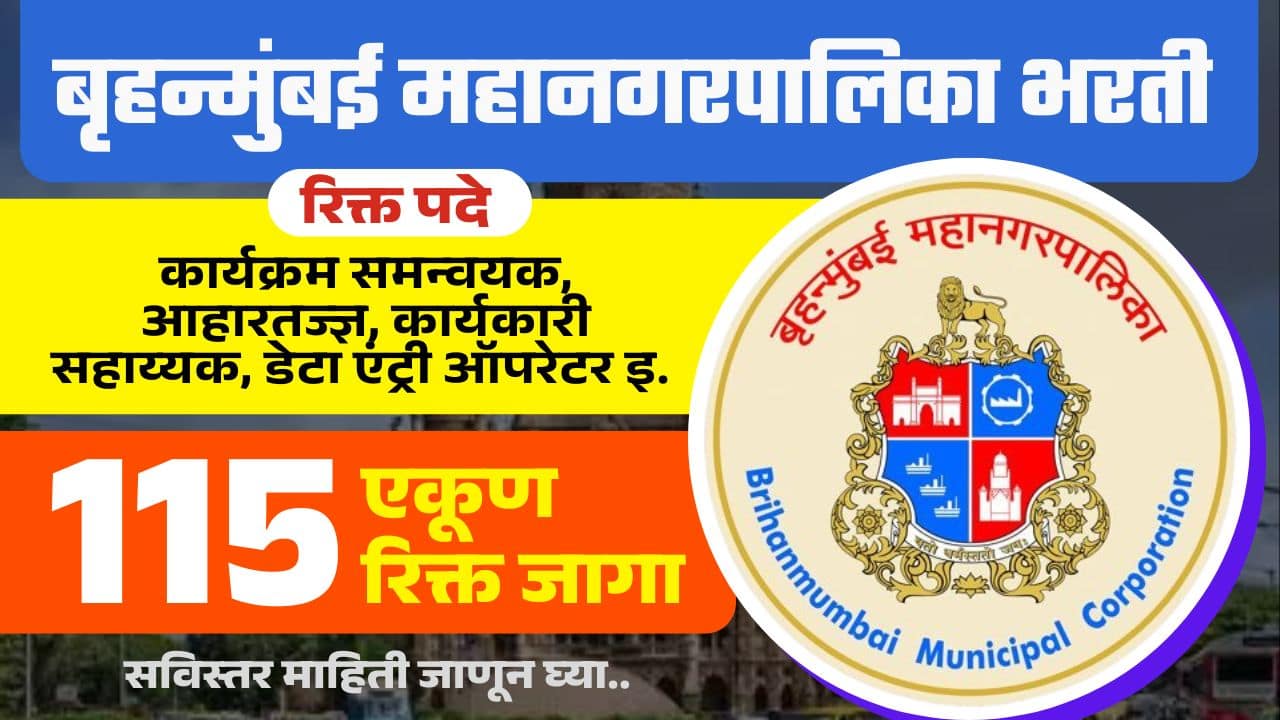MCGM Bharti 2025 MCGM Bharti 2025: बृहन्मुंबई महानगरपालिकेत विविध पदांची भरती होणार आहे. यामध्ये एकूण 115 जागा भरण्यात येणार आहे.....