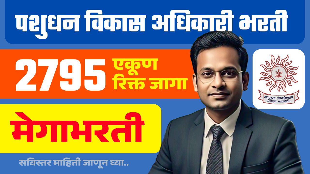MPSC Pashudhan Vikas Adhikari Bharti 2025: MPSC मार्फत पशुधन विकास अधिकारी पदासाठी मोठी भरतीची जाहिरात प्रकाशित करण्यात आली आहे. यामध्ये एकूण 2795 जागांची भरती करण्यात येणार आहे. पात्र उमेदवारांना यासाठी ऑनलाईन अर्ज करता येणार असून, अर्ज करण्याची शेवटची तारीख 19 मे 2025 आहे. अधिक माहितीसाठी उमेदवारांनी खाली देण्यात आलेली अधिकृत जाहिरातही एकदा संपूर्ण वाचावी.