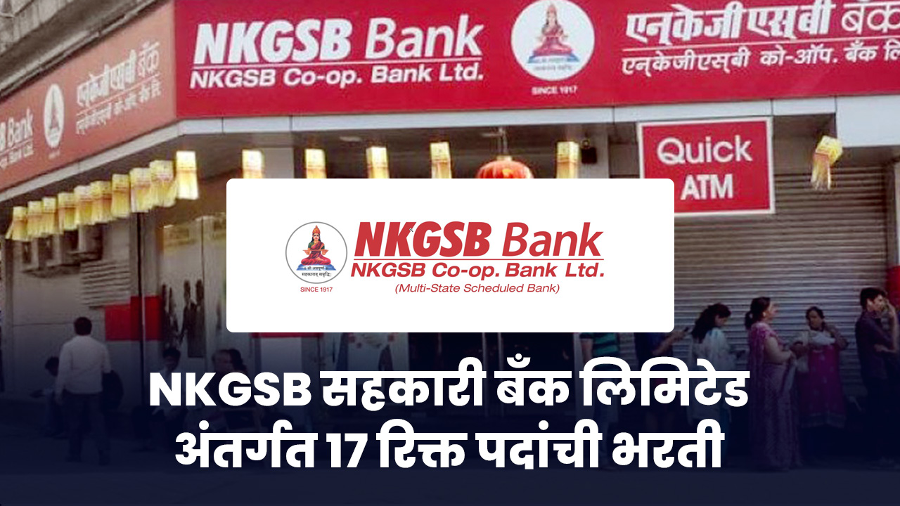 NKGSB Co-op Bank Bharti 2024: NKGSB सहकारी बँक लिमिटेड अंतर्गत विविध पदांची भरती जाहीर करण्यात आली आहे. ही भरती एकूण 17 जागांसाठी होणार आहे. पात्र उमेदवारांना यासाठी ऑनलाईन (ई मेल) अर्ज करता येणार आहे. अर्ज करण्याची शेवटची तारीख 06 ऑक्टोबर 2024 आहे. उमेदवारांनी खाली देण्यात आलेली जाहिरात एकदा संपूर्ण वाचावी.