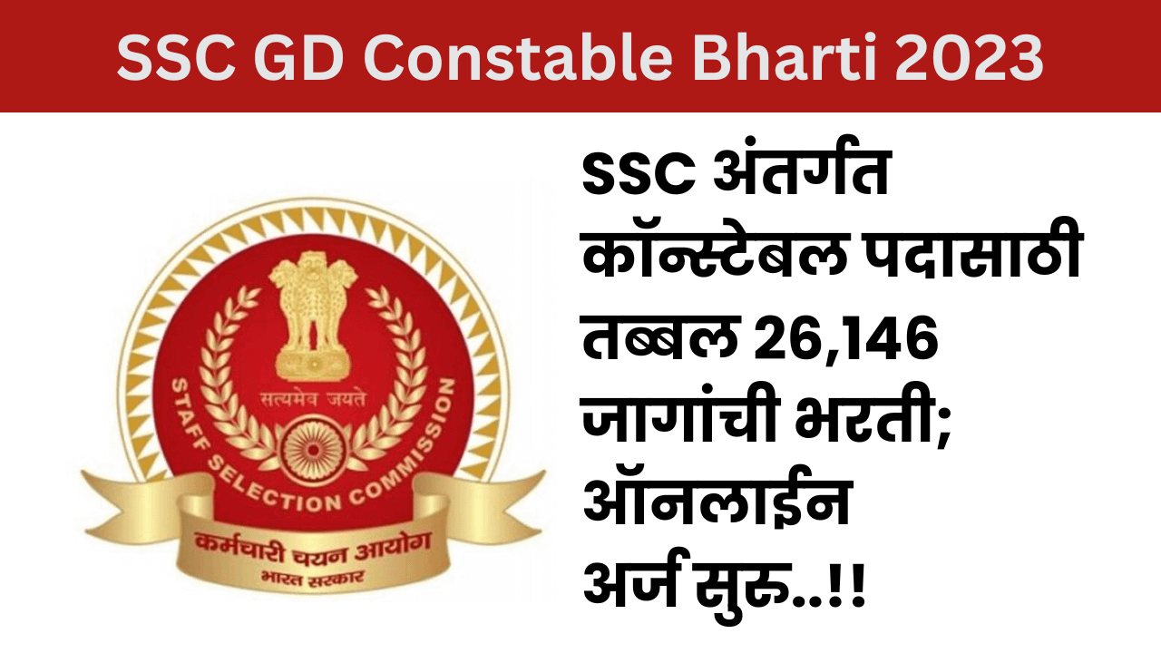 SSC GD Constable Bharti 2023 SSC GD Constable Bharti 2023: कर्मचारी निवड आयोग (SSC) अंतर्गत विविध पदाच्या एकूण 26,146 जागांसाठी भरतीची जाहिरात....