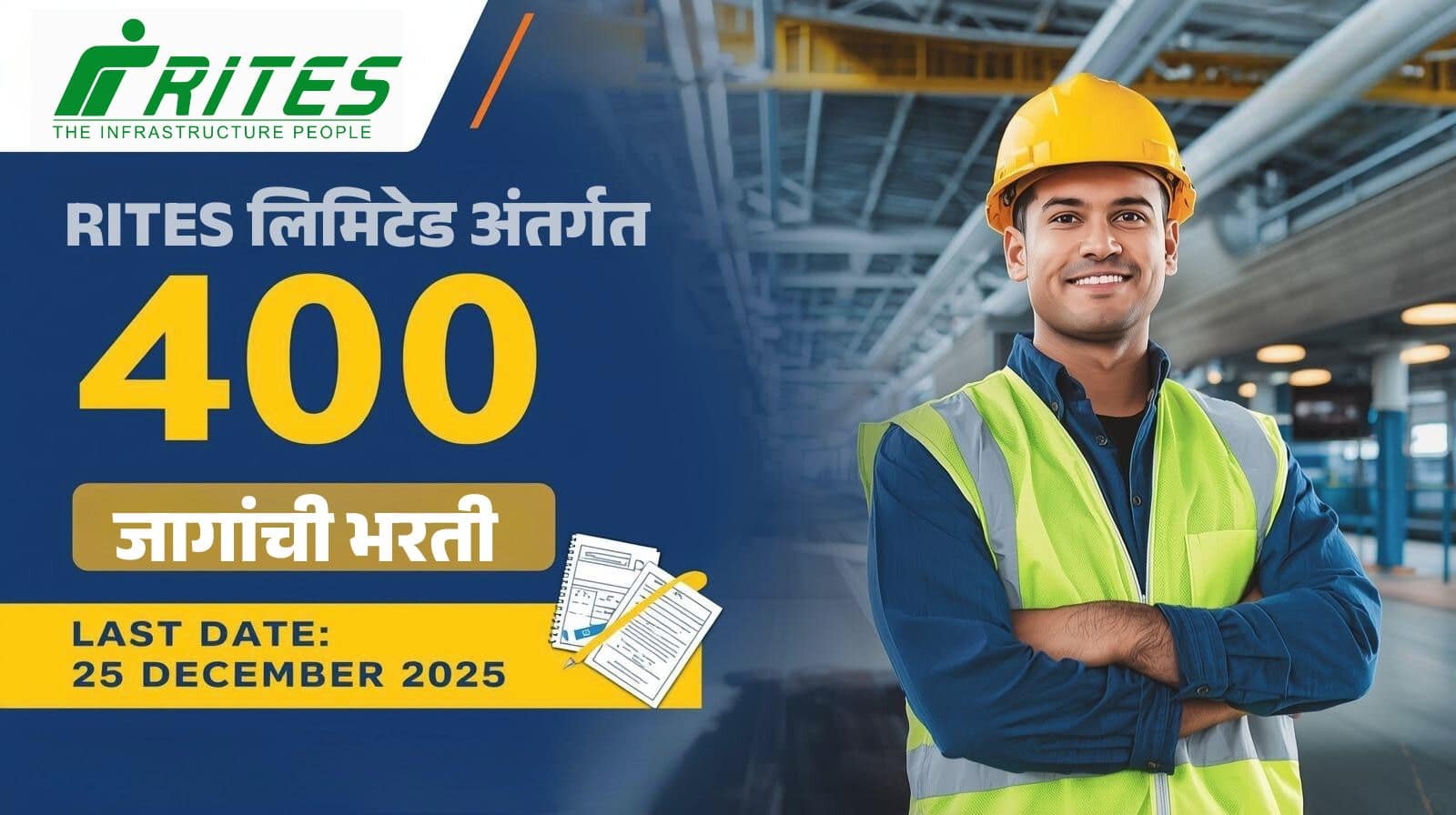 RITES Bharti 2025: RITES लिमिटेडमध्ये 400 जागांसाठी भरती