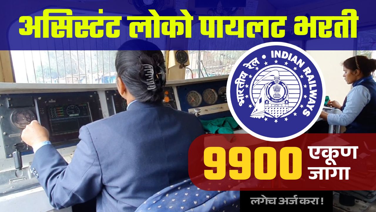 RRB ALP Bharti 2025: भारतीय रेल्वेत ‘असिस्टंट लोको पायलट’ या पदांसाठी मोठी भरती जाहीर करण्यात आली आहे. ही भरती एकूण 9900 जागांसाठी होणार आहे. पात्र उमेदवारांना यासाठी ऑनलाईन अर्ज करता येणार असून अर्ज करण्याची शेवटची तारीख 09 मे 2025 आहे. अधिक माहितीसाठी उमेदवारांनी खाली देण्यात आलेली अधिकृत जाहिरातही एकदा संपूर्ण वाचावी.