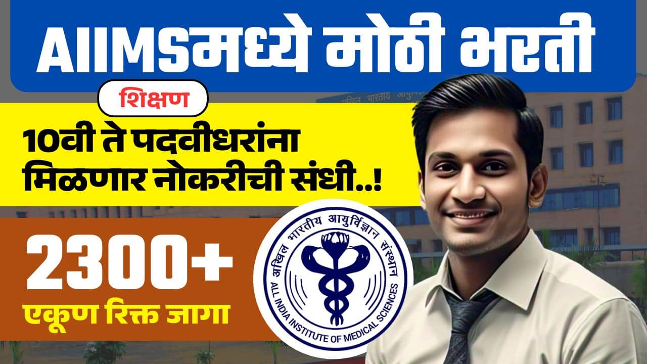 AIIMS CRE Bharti 2025 AIIMS CRE Bharti 2025: अखिल भारतीय आयुर्विज्ञान संस्थेत विविध पदाच्या एकूण 300+ जागांसाठी भरतीची जाहिरात नुकतीच प्रकाशित करण्यात....
