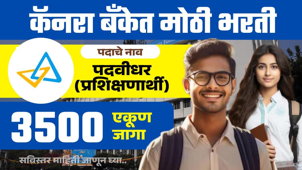 Canara Bank Apprentice Bharti 2025 Canara Bank Apprentice Bharti 2025: कॅनरा बँक अंतर्गत विविध पदाच्या एकूण 3500 जागांसाठी भरतीची जाहिरात नुकतीच प्रकाशित करण्यात....