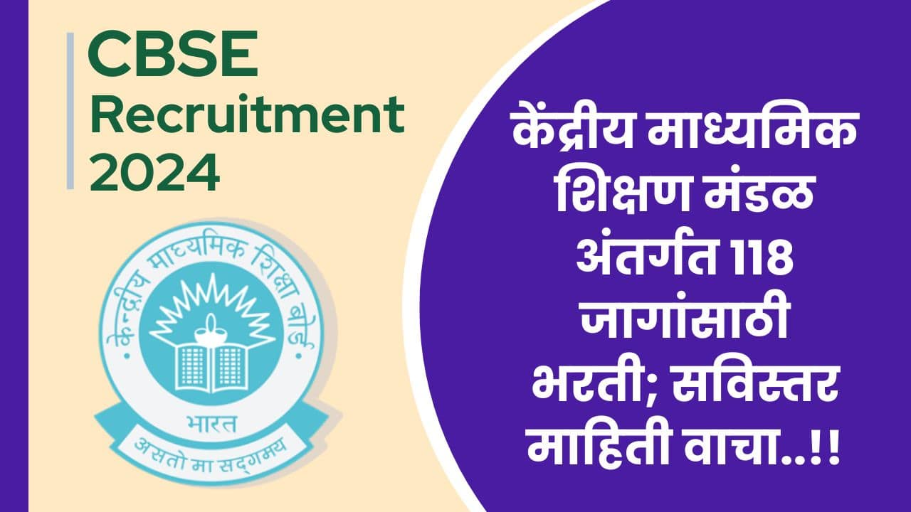 CBSE Recruitment 2024: केंद्रीय माध्यमिक शिक्षण मंडळ अंतर्गत 118 जागांसाठी भरती; सविस्तर माहिती वाचा..!!