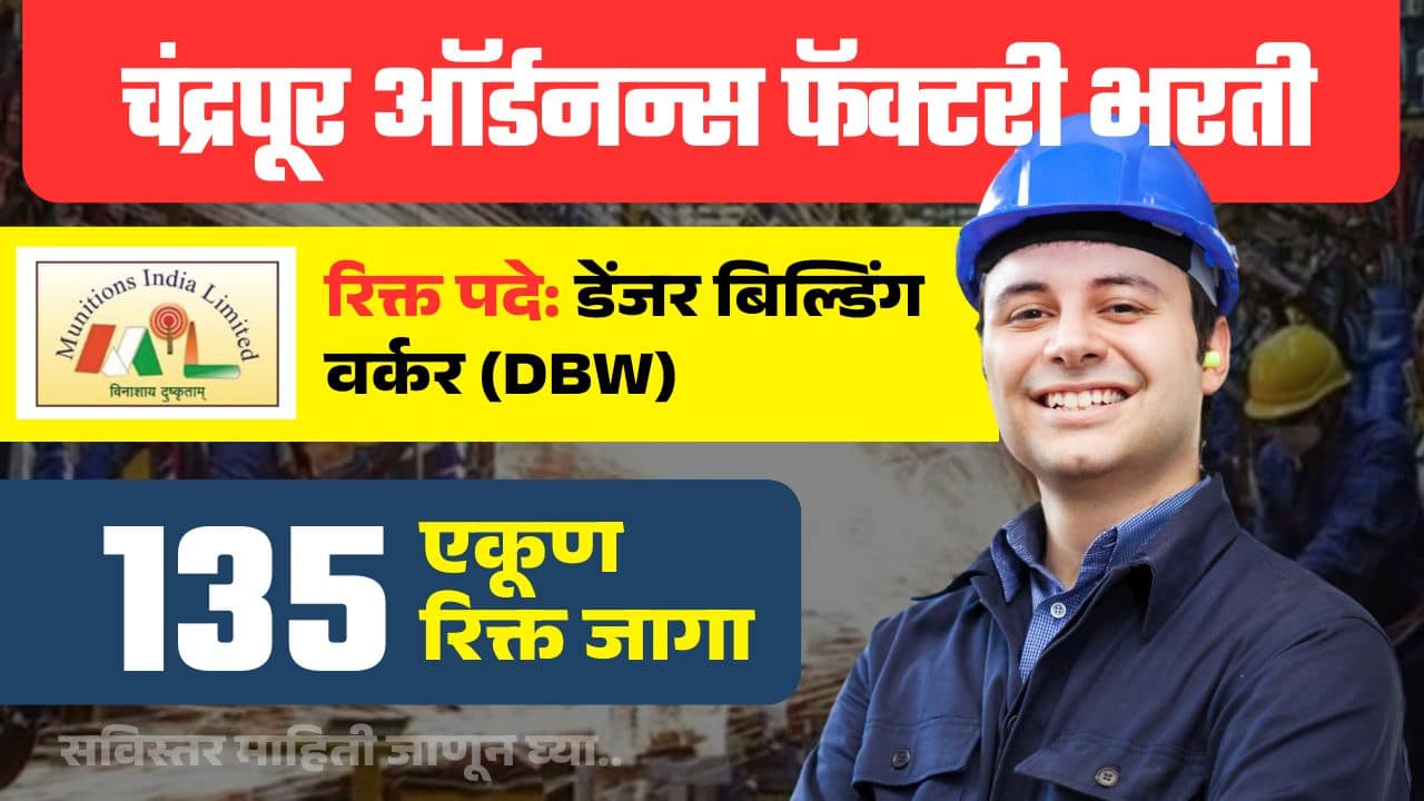 Ordnance Factory Chanda Bharti 2025 Ordnance Factory Chanda Bharti 2025: चंद्रपूर ऑर्डनन्स फॅक्टरी मध्ये ‘डेंजर बिल्डिंग वर्कर’ पदांसाठी 135 जागा....