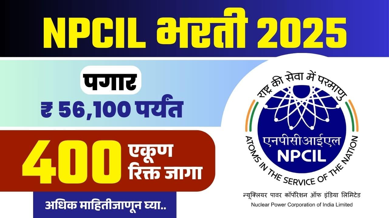 NPCIL Bharti 2025: न्यूक्लियर पावर कॉर्पोरेशन ऑफ इंडिया लि. मध्ये 400 जागांची भरती