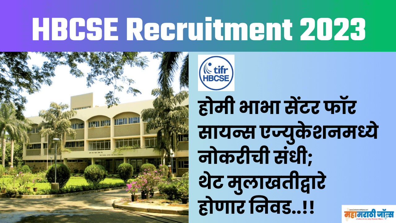 HBCSE Bharti 2023: होमी भाभा सेंटर फॉर सायन्स एज्युकेशनमध्ये नोकरीची संधी; थेट मुलाखतीद्वारे होणार निवड..!!