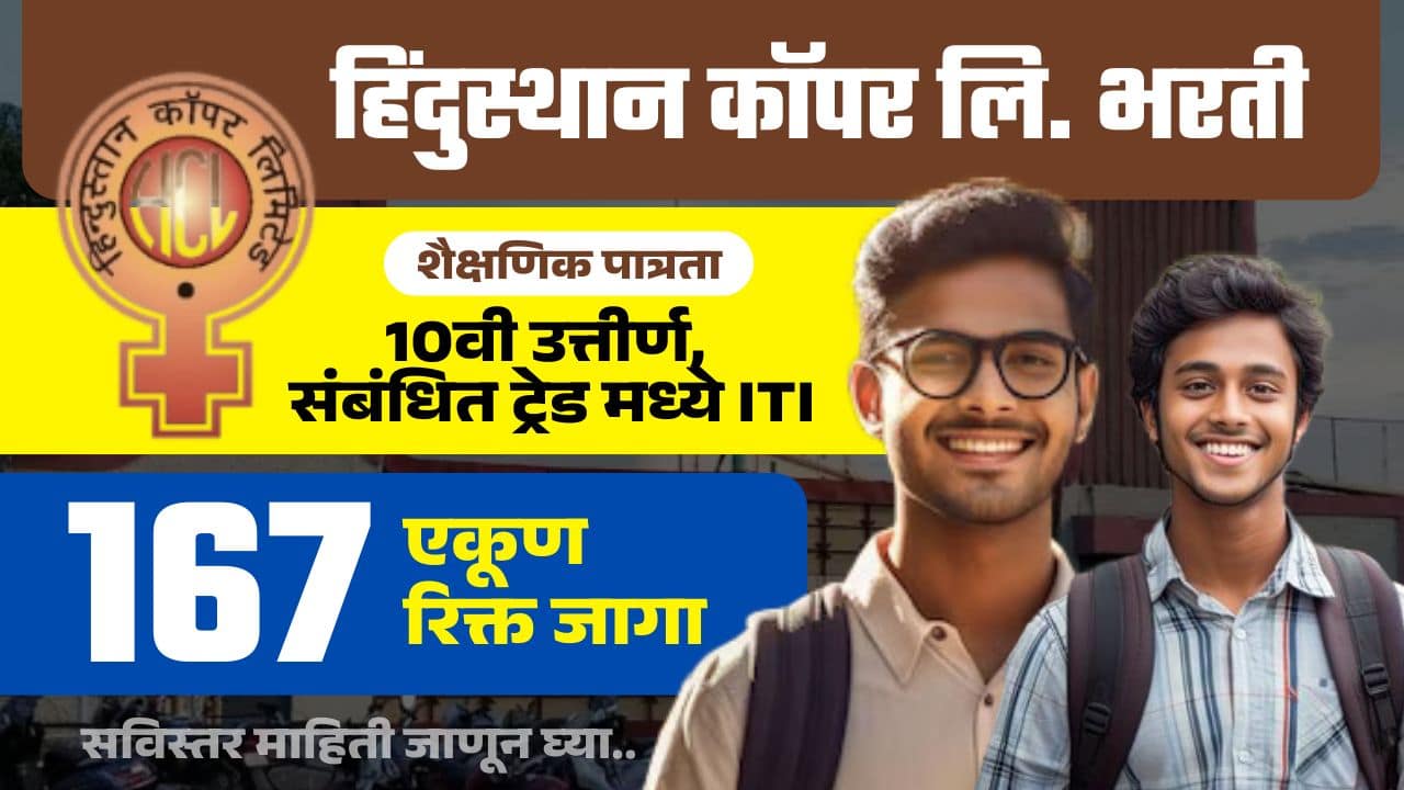 Hindustan Copper Bharti 2025 Hindustan Copper Bharti 2025: हिंदुस्तान कॉपर लिमिटेड तर्फे ‘ट्रेड अप्रेंटिस’ पदासाठी एकूण 167 जागांची भरती जाहीर....