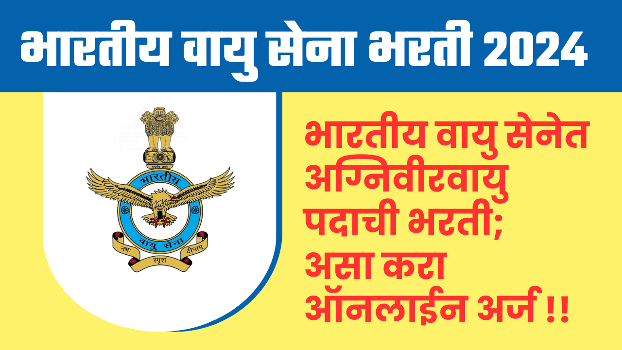 IAF Agniveervayu Recruitment 2024: भारतीय वायु सेनेत अग्निवीरवायु पदाची भरती; असा करा ऑनलाईन अर्ज !!
