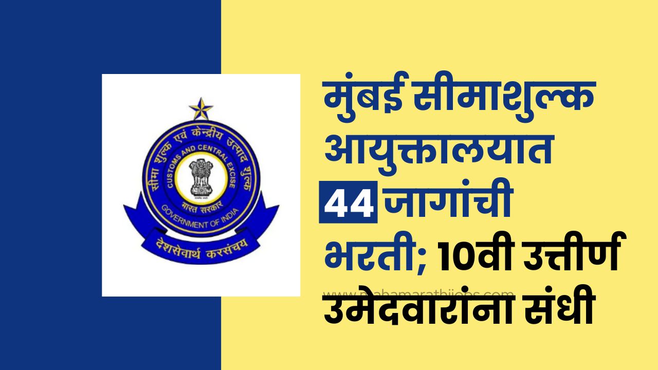 Mumbai Customs Bharti 2024: मुंबई सीमाशुल्क आयुक्तालयात 44 जागांची भरती; 10वी उत्तीर्ण उमेदवारांना संधी