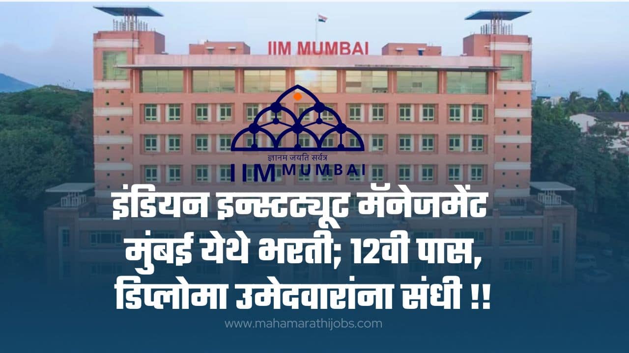 IIM Mumbai Bharti 2024: इंडियन इन्स्टट्यूट मॅनेजमेंट मुंबई येथे भरती; 12वी पास, डिप्लोमा उमेदवारांना संधी !!