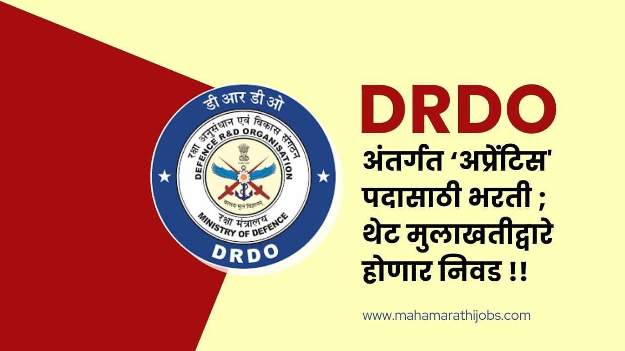 DRDO Apprentice Bharti 2024: DRDO अंतर्गत ‘अप्रेंटिस’ पदासाठी भरती
