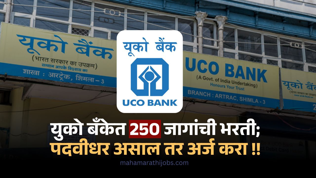 UCO Bank Bharti 2025: युको बँकेत 250 जागांची भरती; पदवीधर असाल तर अर्ज करा !!