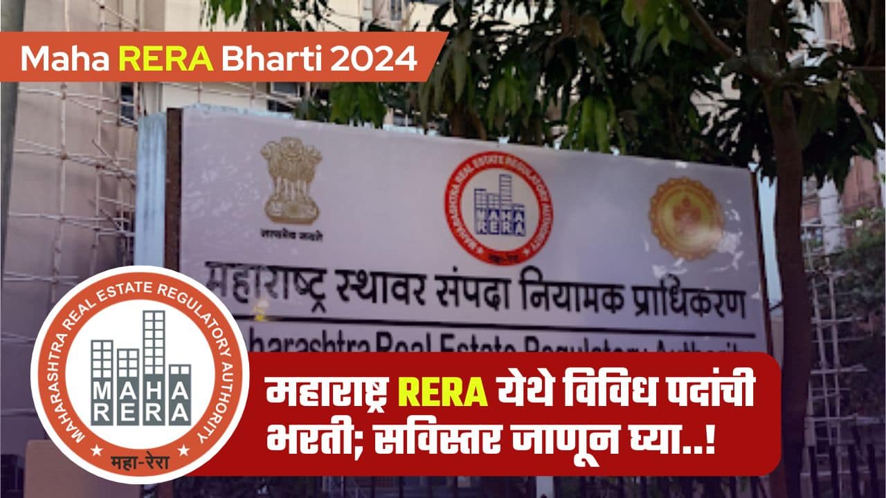 Maha RERA Bharti 2024: महाराष्ट्र RERA येथे विविध पदांची भरती; जाणून घ्या सविस्तर माहिती..!