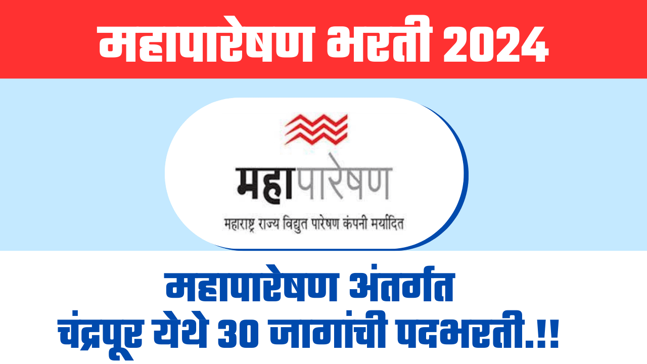 MahaPareshan Chandrapur Bharti 2024: महापारेषण अंतर्गत चंद्रपूर येथे 30 जागांची पदभरती.!!