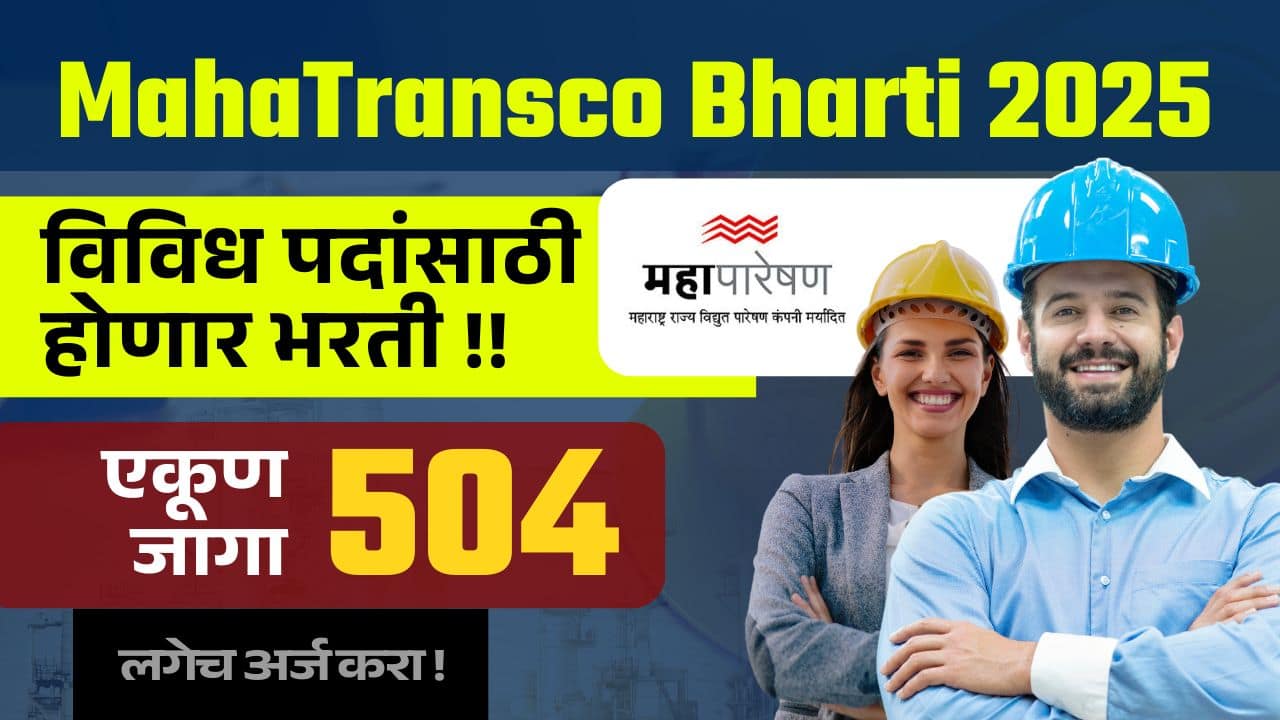 MahaTransco Bharti 2025 MahaTransco Bharti 2025: महाराष्ट्र राज्य विद्युत पारेषण कंपनीत विविध पदांची भरती जाहीर करण्यात आली आहे. यामध्ये एकूण 504 जागा....