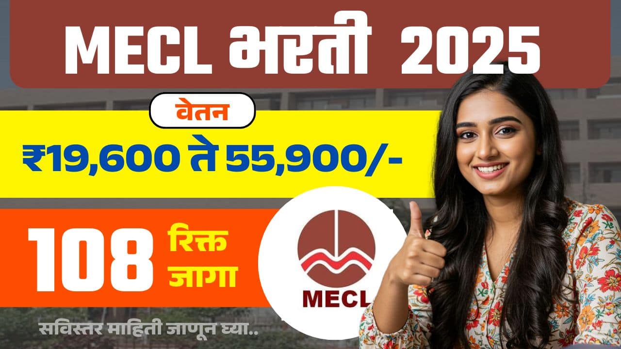 MECL Bharti 2025 MECL Bharti 2025: मिनरल एक्स्प्लोरेशन कॉर्पोरेशन लिमिटेडमध्ये विविध पदांची भरती होणार आहे. ही भरती एकूण 108 जागांकरिता....