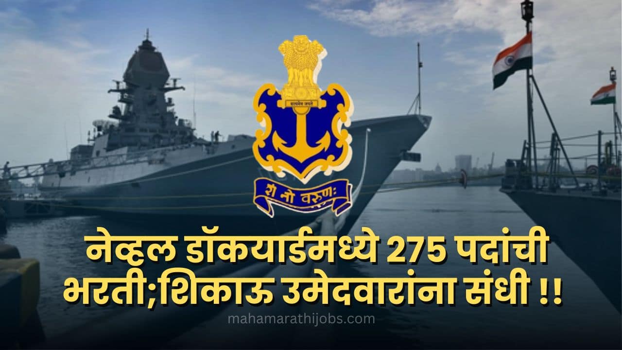 Naval Dockyard Bharti 2024: नेव्हल डॉकयार्डमध्ये 275 पदांची भरती; शिकाऊ उमेदवारांना संधी !!