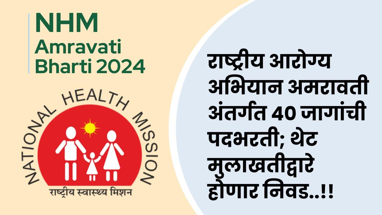 NHM Amravati Bharti 2024: राष्ट्रीय आरोग्य अभियान अमरावती अंतर्गत ४० जागांची पदभरती; थेट मुलाखतीद्वारे होणार निवड..!!