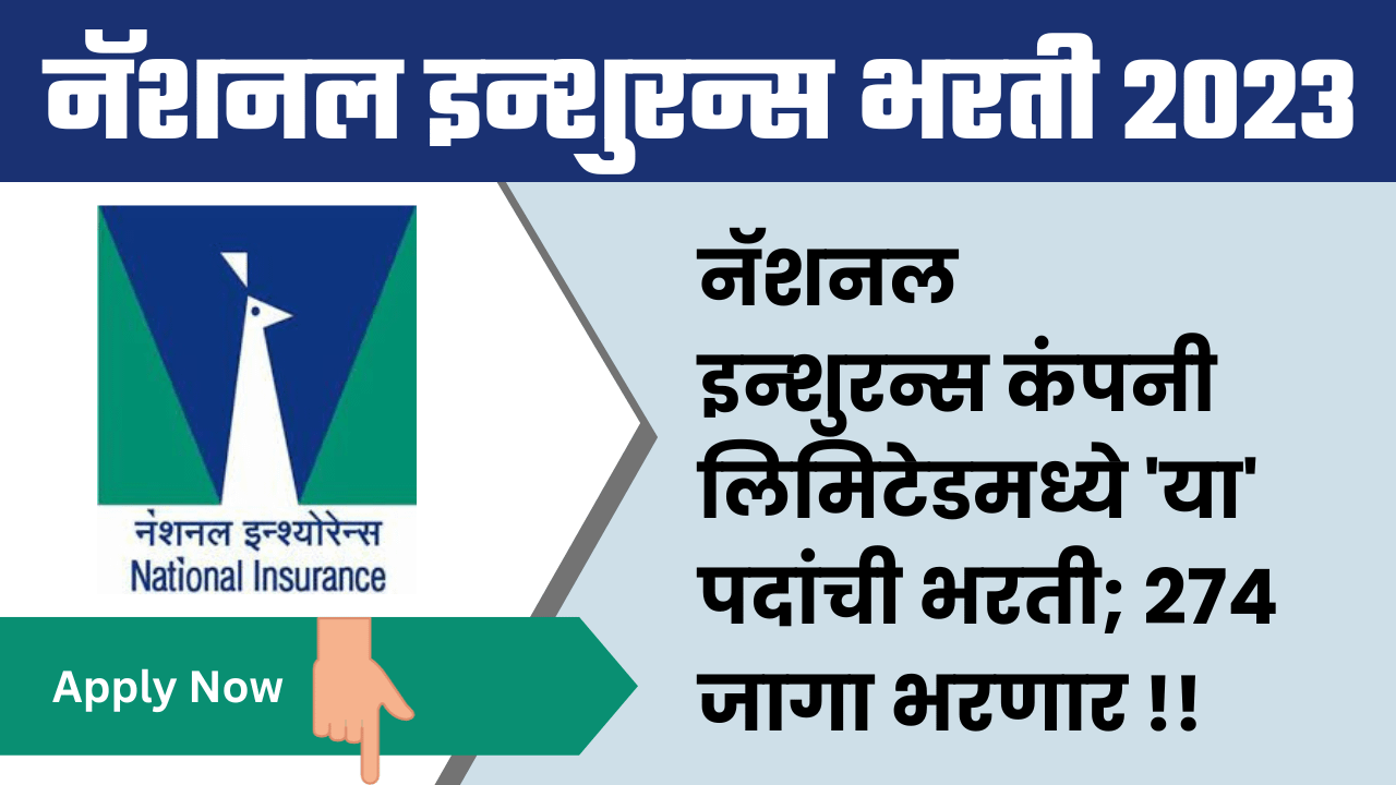 NICL Bharti 2024: नॅशनल इन्शुरन्स कंपनी लिमिटेडमध्ये ‘या’ पदांची भरती; 274 जागा भरणार !!