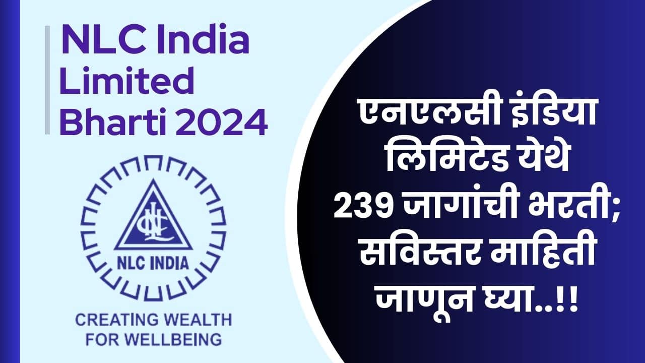 NLC India Limited Bharti 2024 NLC India Limited Bharti 2024: एनएलसी इंडिया लिमिटेड अंतर्गत विविध पदाच्या एकूण 239 जागांसाठी भरतीची जाहिरात नुकतीच प्रकाशित....