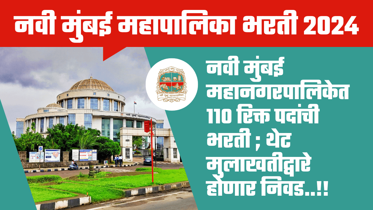 NMMC Bharti 2024: नवी मुंबई महानगरपालिकेत 110 रिक्त पदांची भरती ; थेट मुलाखतीद्वारे होणार निवड..!!