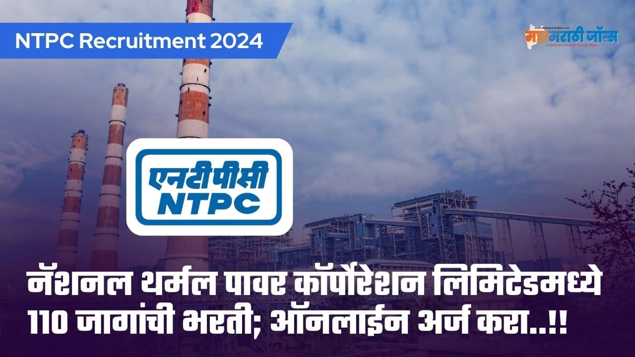 NTPC Recruitment 2024 NTPC Recruitment 2024: नॅशनल थर्मल पावर कॉर्पोरेशन लिमिटेड अंतर्गत विविध पदाच्या एकूण 110 जागांसाठी भरतीची जाहिरात नुकतीच प्रकाशित करण्यात आली....
