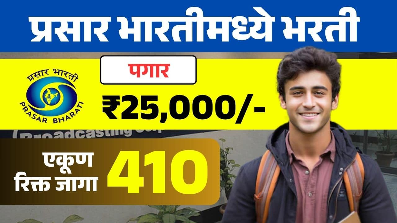 Prasar Bharti 2025: प्रसार भारती मध्ये 410 जागांची भरती (मुदतवाढ)