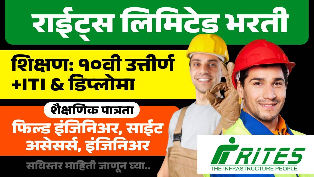 RITES Bharti 2025 RITES Bharti 2025: राईट्स लिमिटेडमध्ये ‘फिल्ड इंजिनिअर,साईट असेसर्स, इंजिनिअर (Ultrasonic Testing)‘ या पदांची भरती करण्यात येणार आहे.....