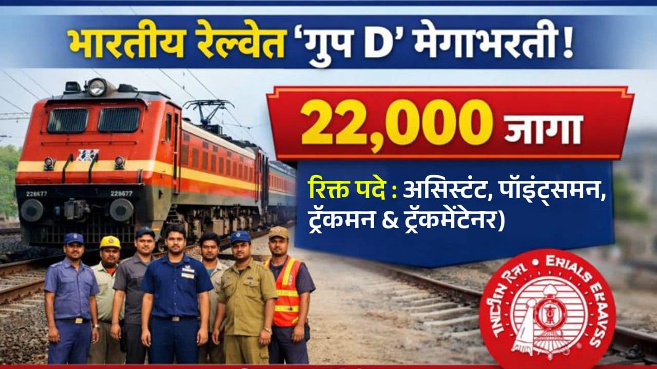 RRB Group D Bharti 2026: भारतीय रेल्वेत ‘ग्रुप D’ पदांच्या 22,000 जागांची मेगाभरती