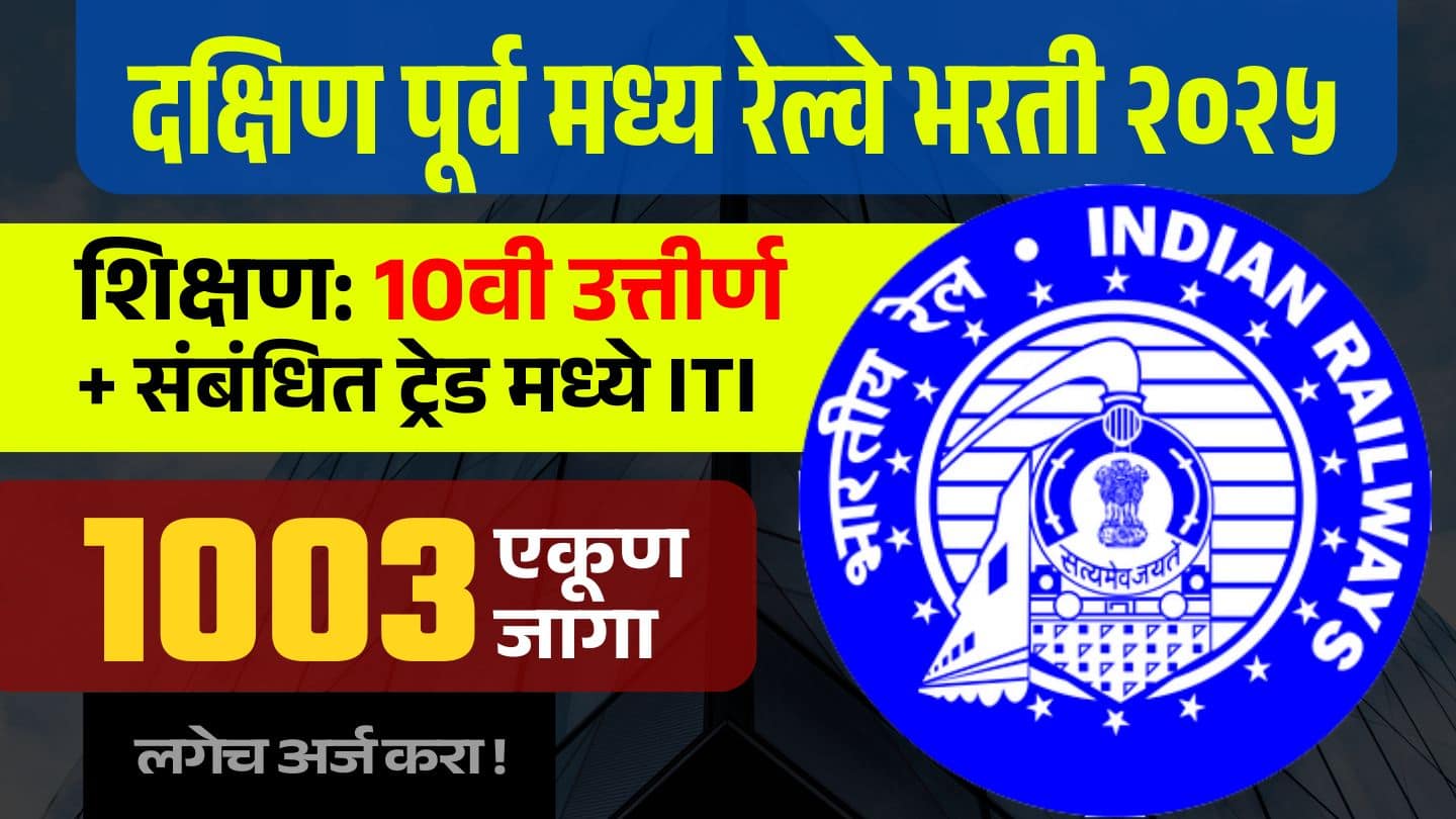 SECR Bharti 2025: दक्षिण पूर्व मध्य रेल्वेमध्ये 1003 जागांची भरती; १०वी उत्तीर्ण उमेदवारांना संधी