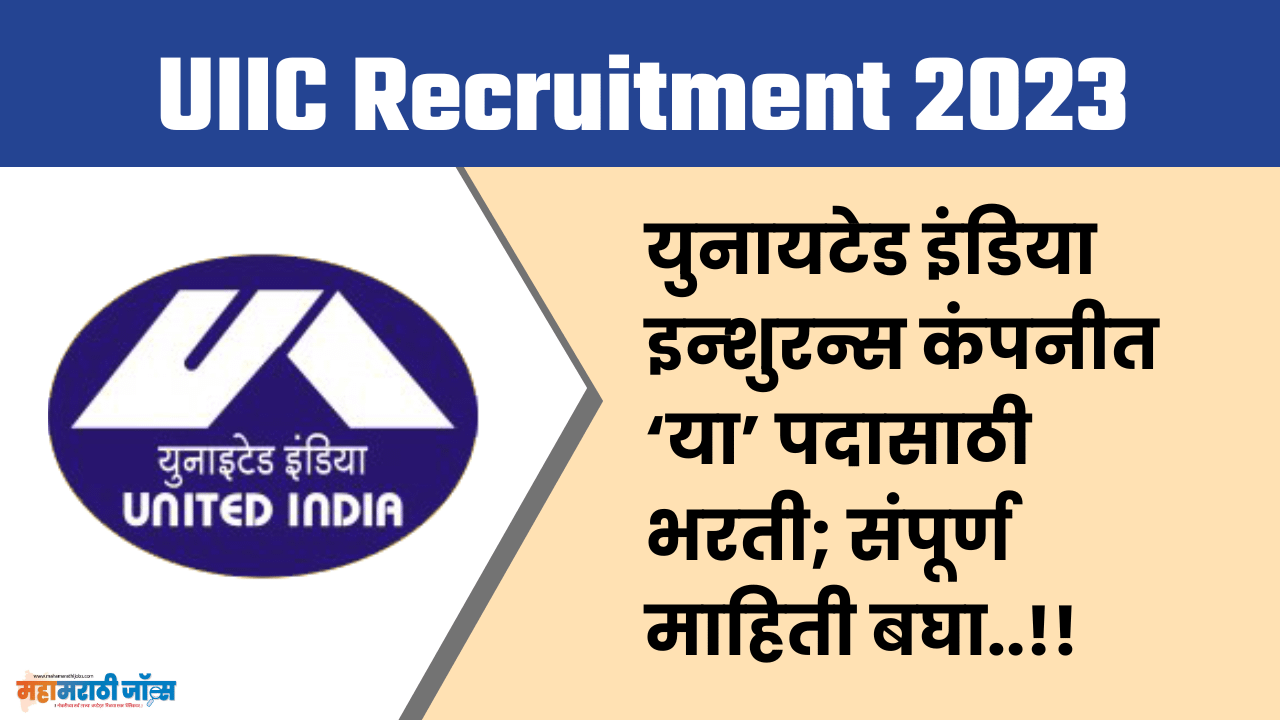 UIIC Bharti 2023: युनायटेड इंडिया इन्शुरन्स कंपनीत ‘या’ पदासाठी भरती; संपूर्ण माहिती बघा..!!