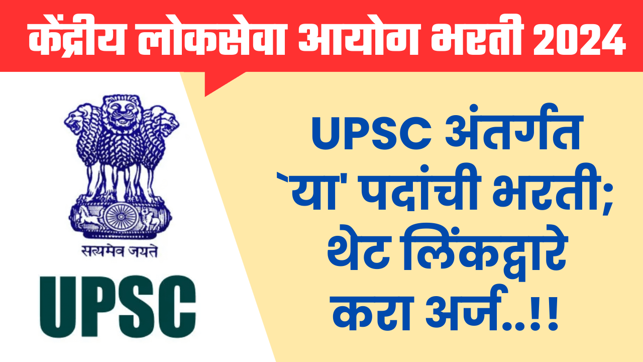 UPSC Recruitment 2024: UPSC अंतर्गत `या’ पदांची भरती; थेट लिंकद्वारे करा अर्ज..!!