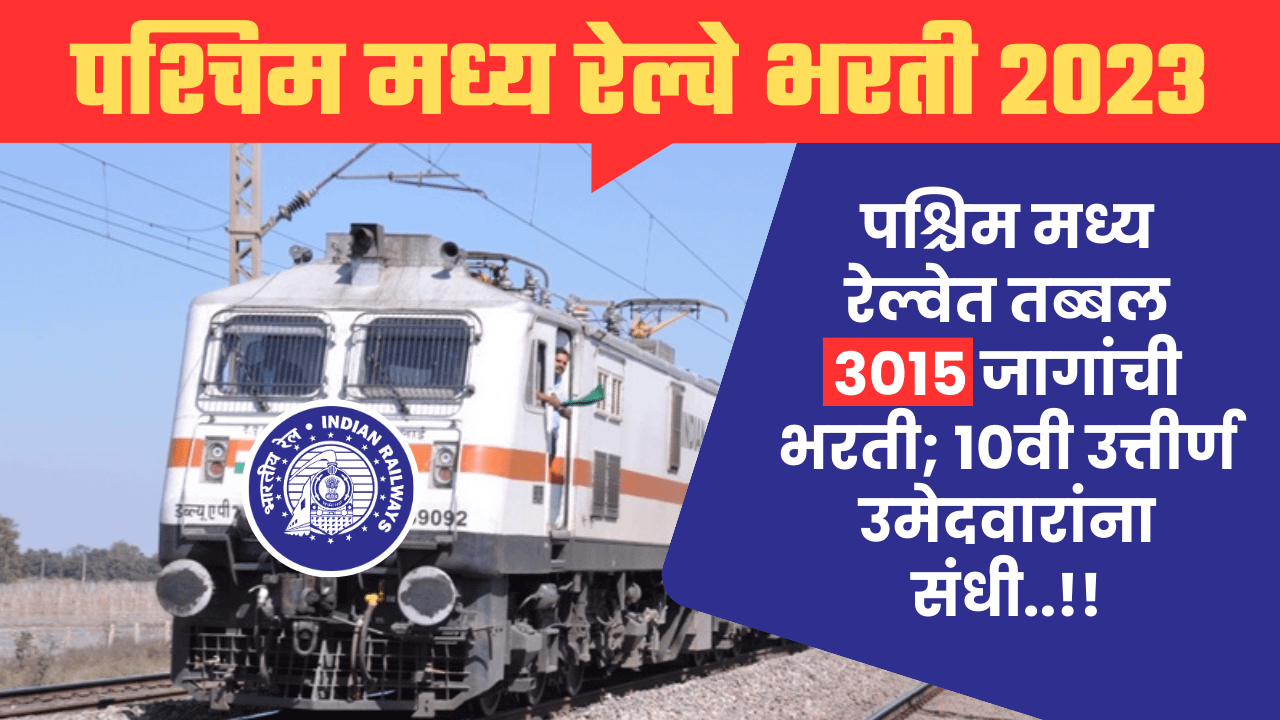 West Central Railway Bharti 2023: पश्चिम मध्य रेल्वेत तब्बल 3015 जागांची भरती; 10वी उत्तीर्ण उमेदवारांना संधी..!!